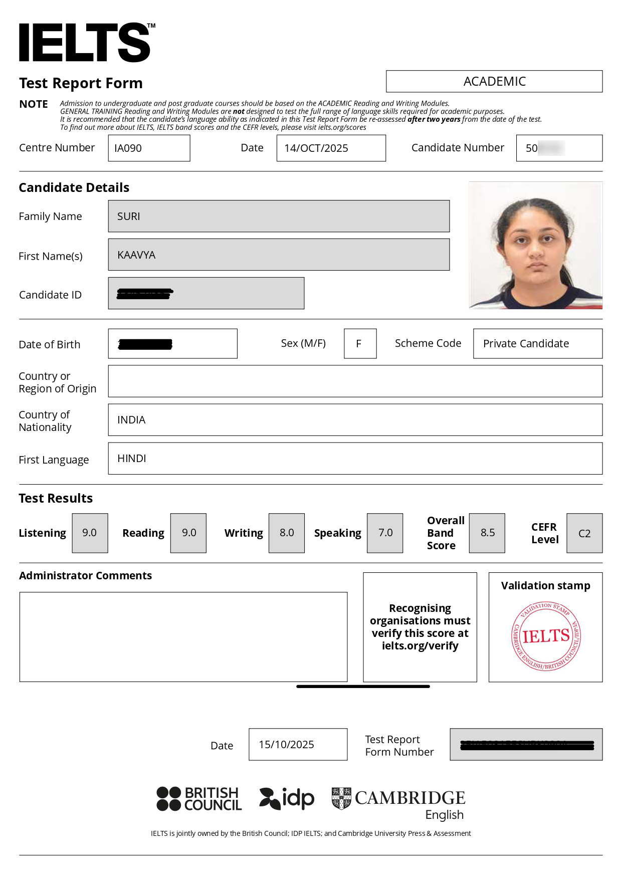 Excellent coaching with great faculty! The mock tests were really helpful, and the personalized feedback improved my skills quickly. With the help of Tathastu education, i got a band 7.5 score in the IELTS exam, and now i am planning to apply abroad for my higher studies. Highly recommend for anyone serious about IELTS preparation!