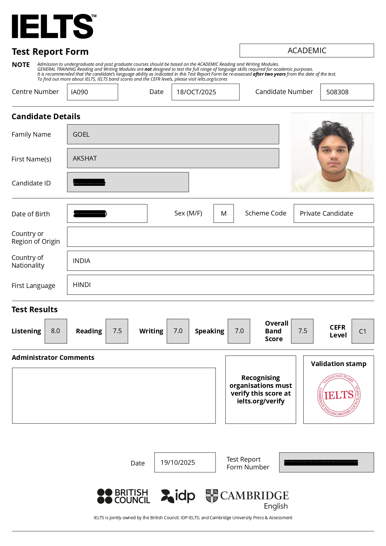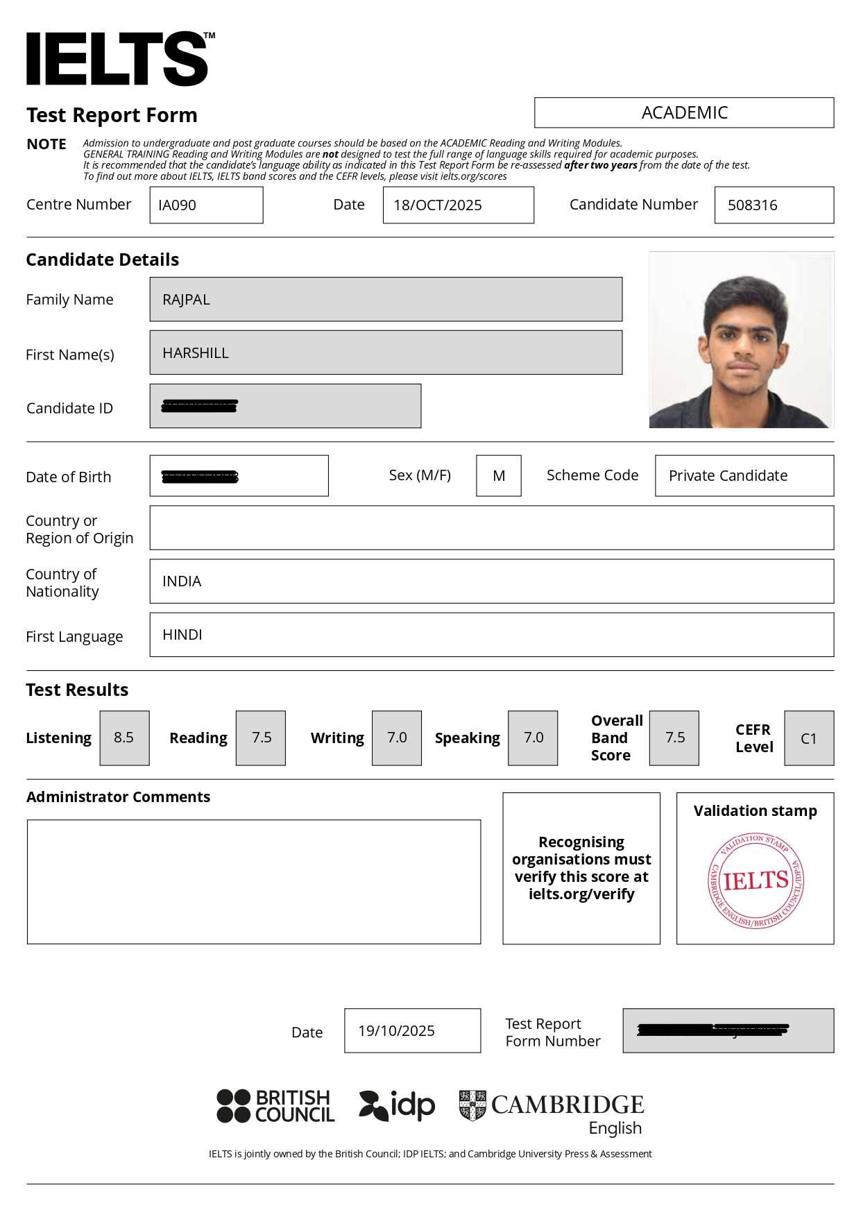 IELTS Overall Band: 7.5